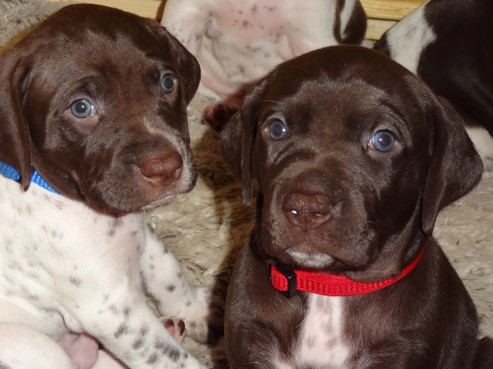 Blue's new name is "Tupper" for Tupper Lake in the Adirondack's a place where my heart has always called home. Red's new name is "Liv", named by Lily, for Living Life to your fullest a belief that we hold close at Quaker Pointe. Lily and I are looking forward to some amazing things from these little guys who have already shown such promise. Liv has shown some amazing swimming, tracking and retrieving potential. Tupper has shown amazing tracking, air scenting, and bird potential pointing at a mere 4 weeks. Both dogs are definitely easy on the eyes. what can I say, its a bit crazy, but its definitely a fun time to live at Quaker Pointe.